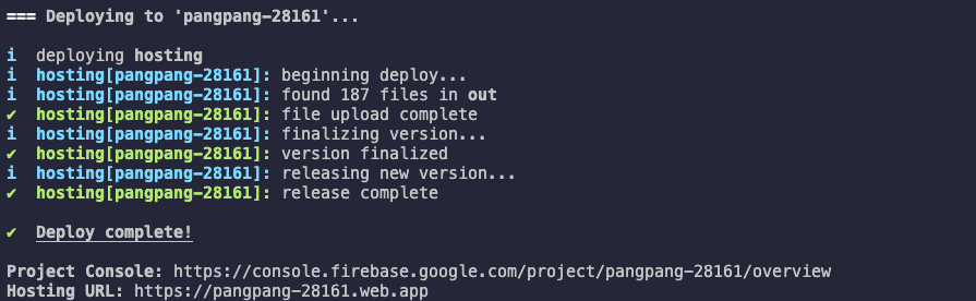 7. 이제 firebasde deploy하면 끝!!