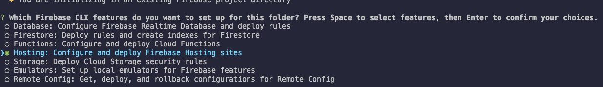 5. firebase init을 설치해주시고