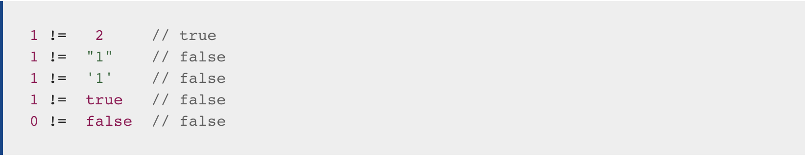 Ex) X != Y는 x와 y는 같지 않다는 애기입니다.