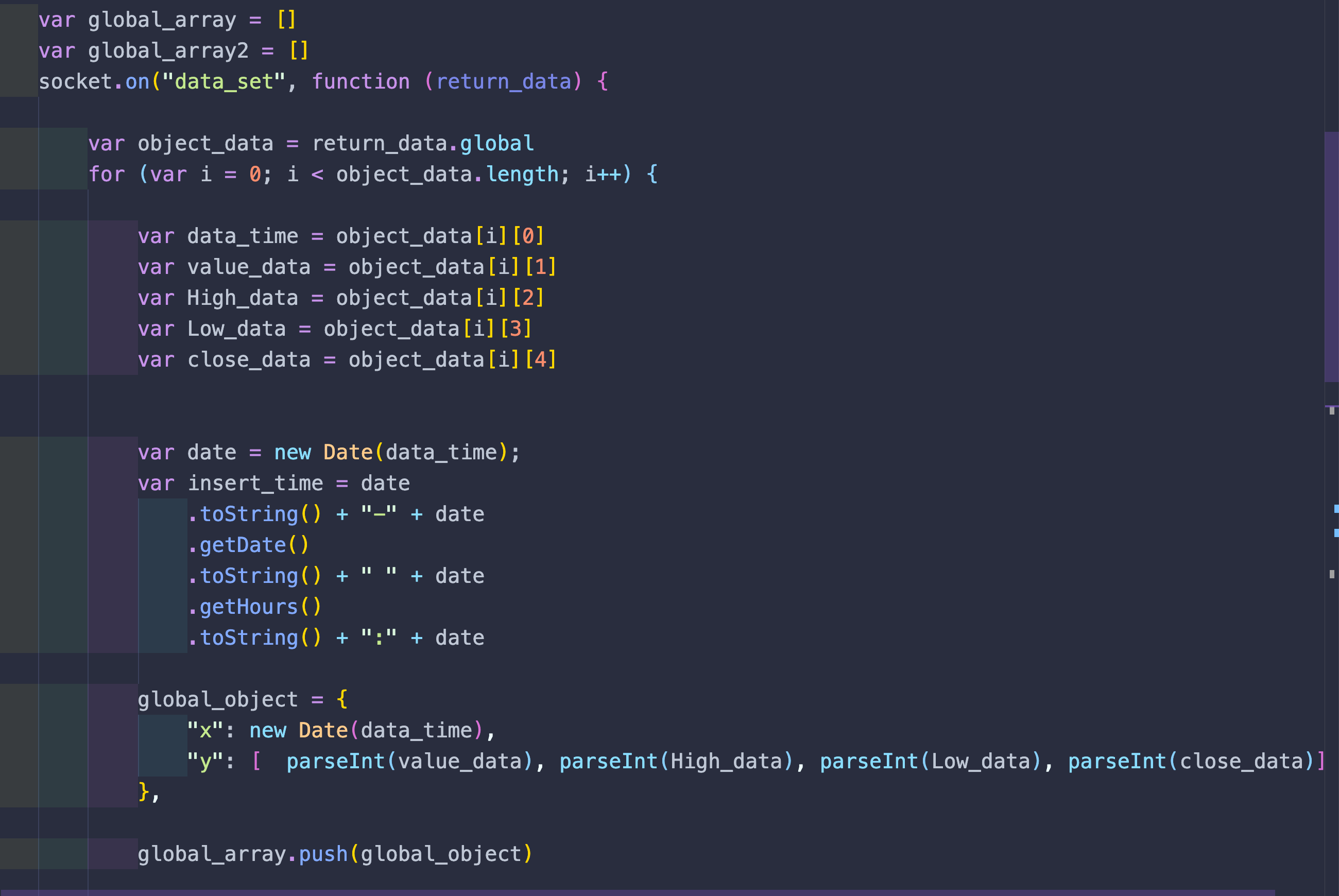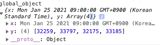 이제 데이터를 가공 한뒤 global_object에 X와 Y형태로 데이터를 넣어줍니다.