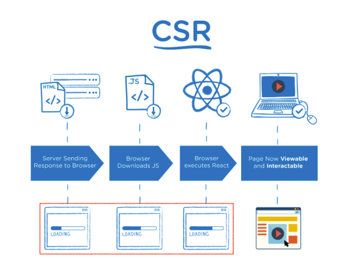 탄생 배경: React, Vue, Angular 의 SPA(Single Page Application)의 등장으로 한페이지에서 모든것을 처리하는것에 초점이 마쳐있는 웹페이지 였습니다. 이것을 CSR(client-side rendering) 부릅니다.