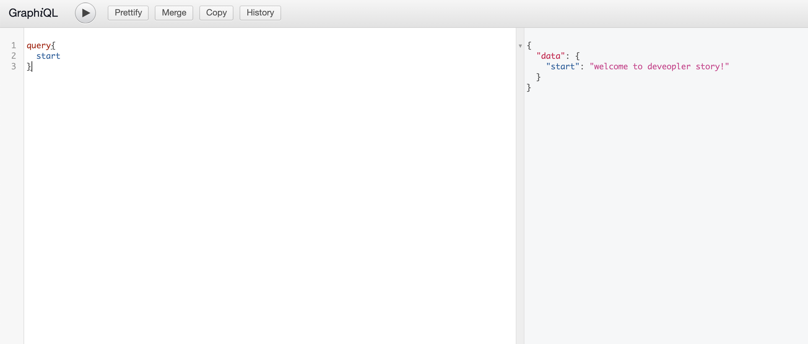 5. 서버를 키면 local:4000/graphql를 가서 query {start } 쓰면 root에 선언했던 값이 나옵니다. !!